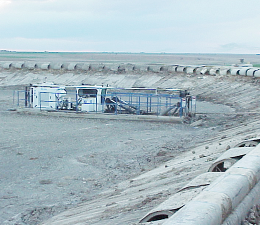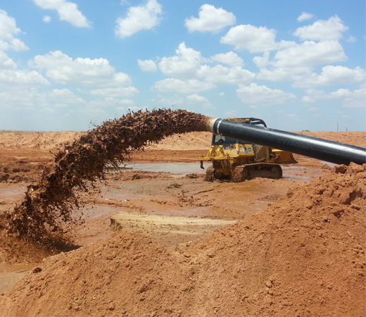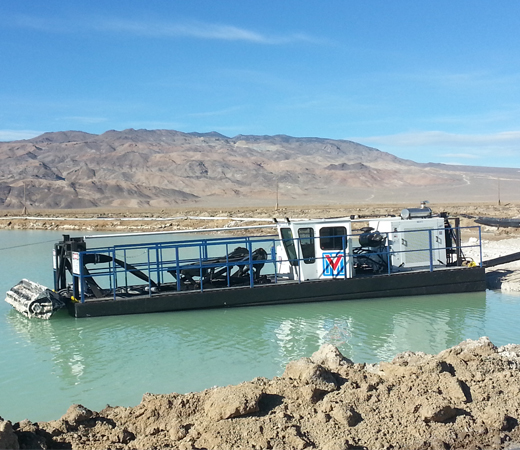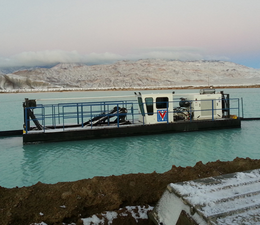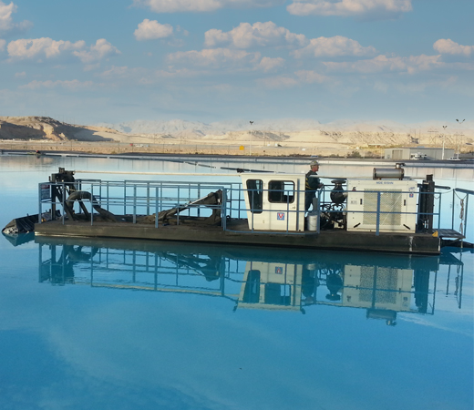 The process of recovering materials we use in our everyday lives creates a large amount of slurry and tailings. Retention ponds are constructed to house these byproduct and cool process waters. These ponds are engineered either in size, shape or both to allow for settling of suspended solids, as pond capacity diminishes, the most cost-effective solution to regain capacity and cooling effect is to dredge this material. Due to the strict EPA guidelines governing product containment on mines these ponds are typically lined with a durable HDPE liner, this in turn makes mechanical dredging near impossible without damaging this liner. Horizontal dredges are extremely effective at removing material from lined ponds without damaging liners when utilizing depth gauges along with gauge wheels to avoid cutterhead contact with the liners.